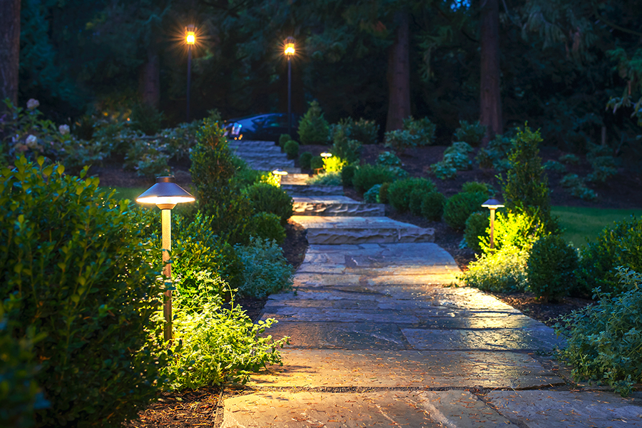 Well-lit walkways, driveways, and entry points reduce trip hazards and deter unwanted activity.